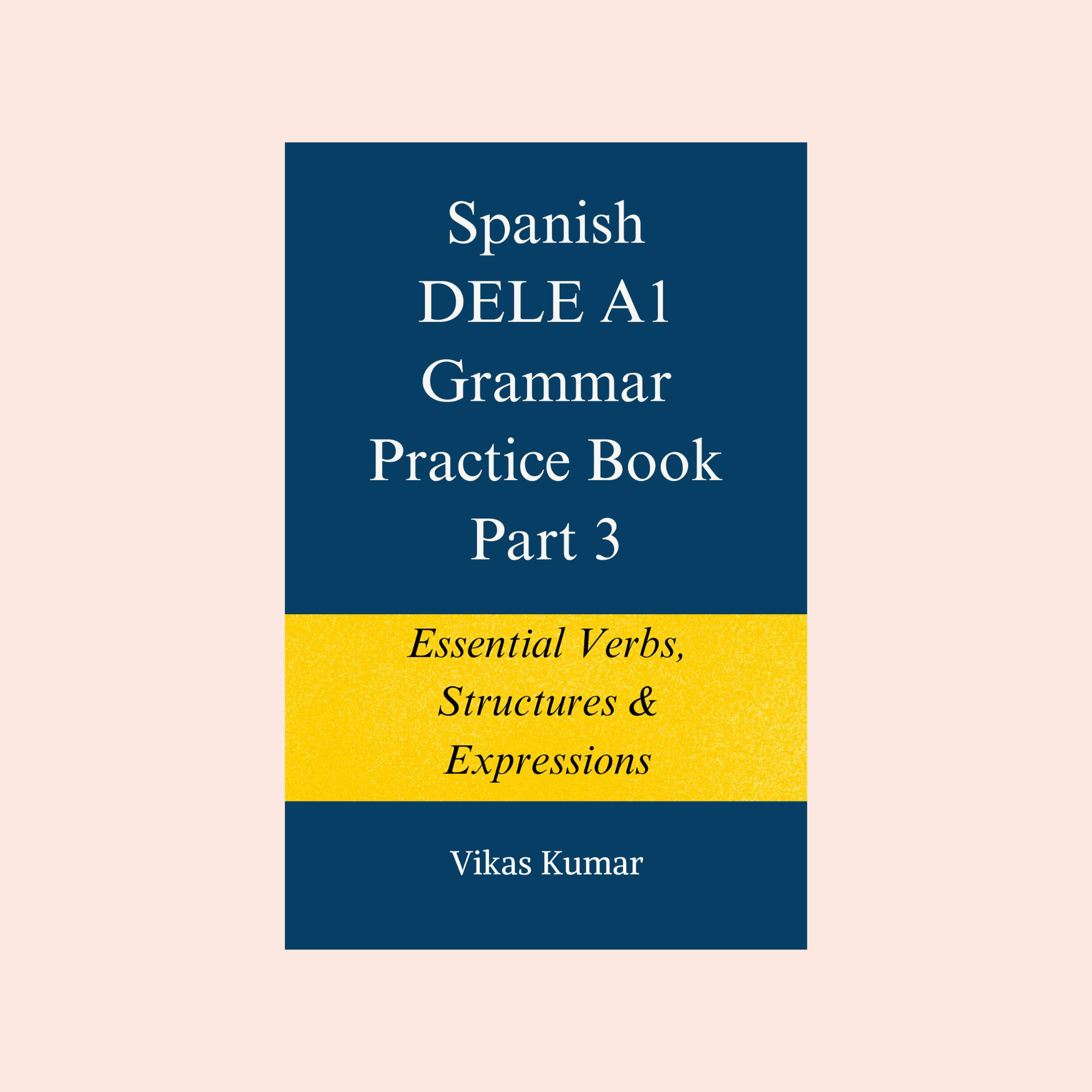 Spanish DELE A1 Grammar Workbook Part 3 is designed for beginner learners who want to master some of the most commonly confusing yet essential Spanish grammar topics. This volume focuses on practical structures that learners need to communicate clearly and naturally at the DELE A1 level.
